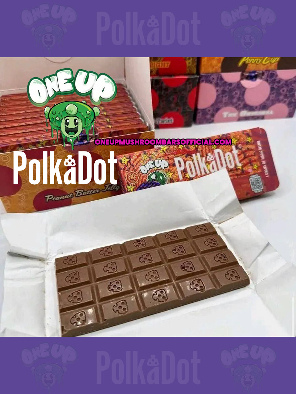 Premium Milk/Dark/White Chocolate, Natural Flavor, Cocoa Butter, and Psilocybin Mushrooms.